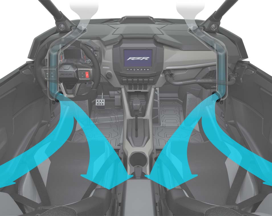La victoria comienza desde dentro, y el RZR Pro R no es una excepción. Su interior está meticulosamente diseñado para ofrecer mayor comodidad y practicidad, lo que le permite recorrer distancias más largas, conducir con más intensidad y terminar en primer lugar.