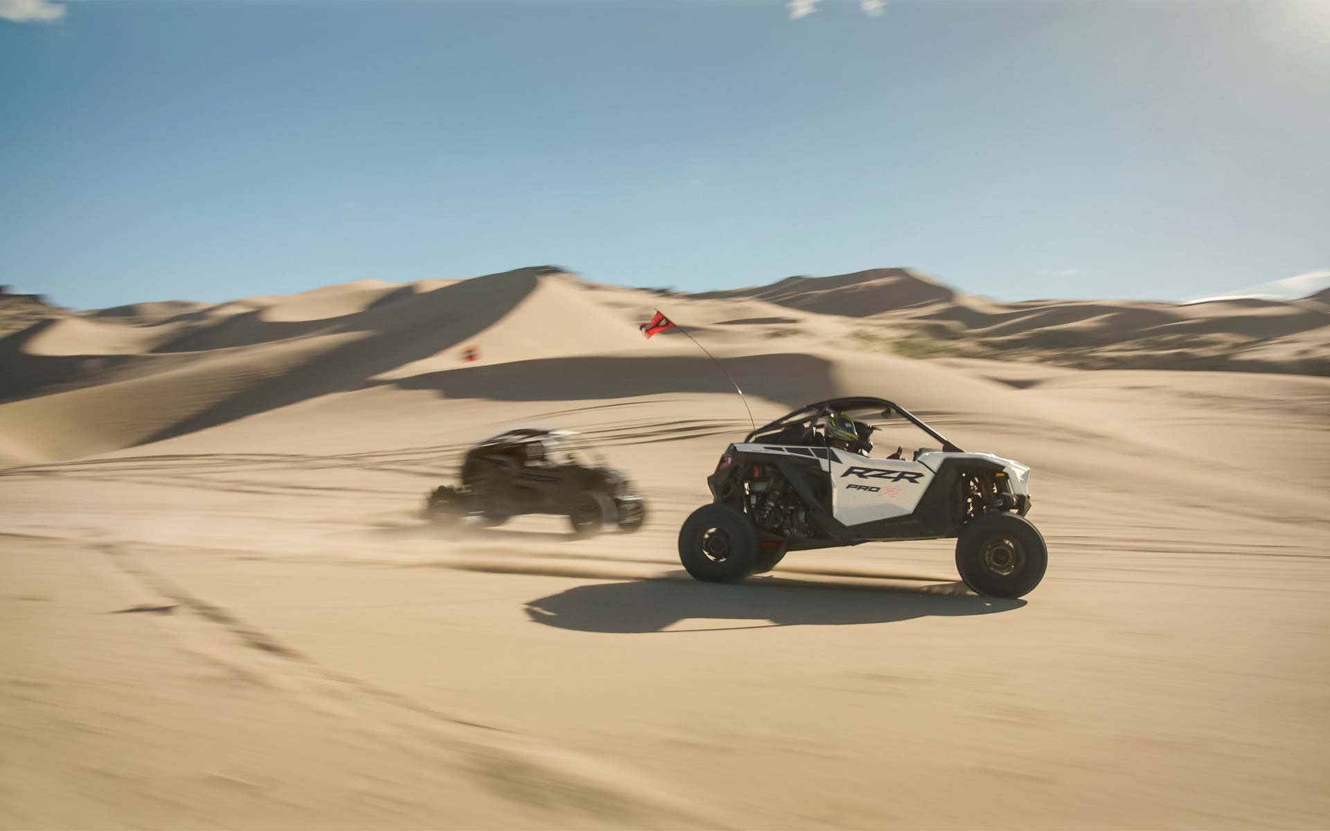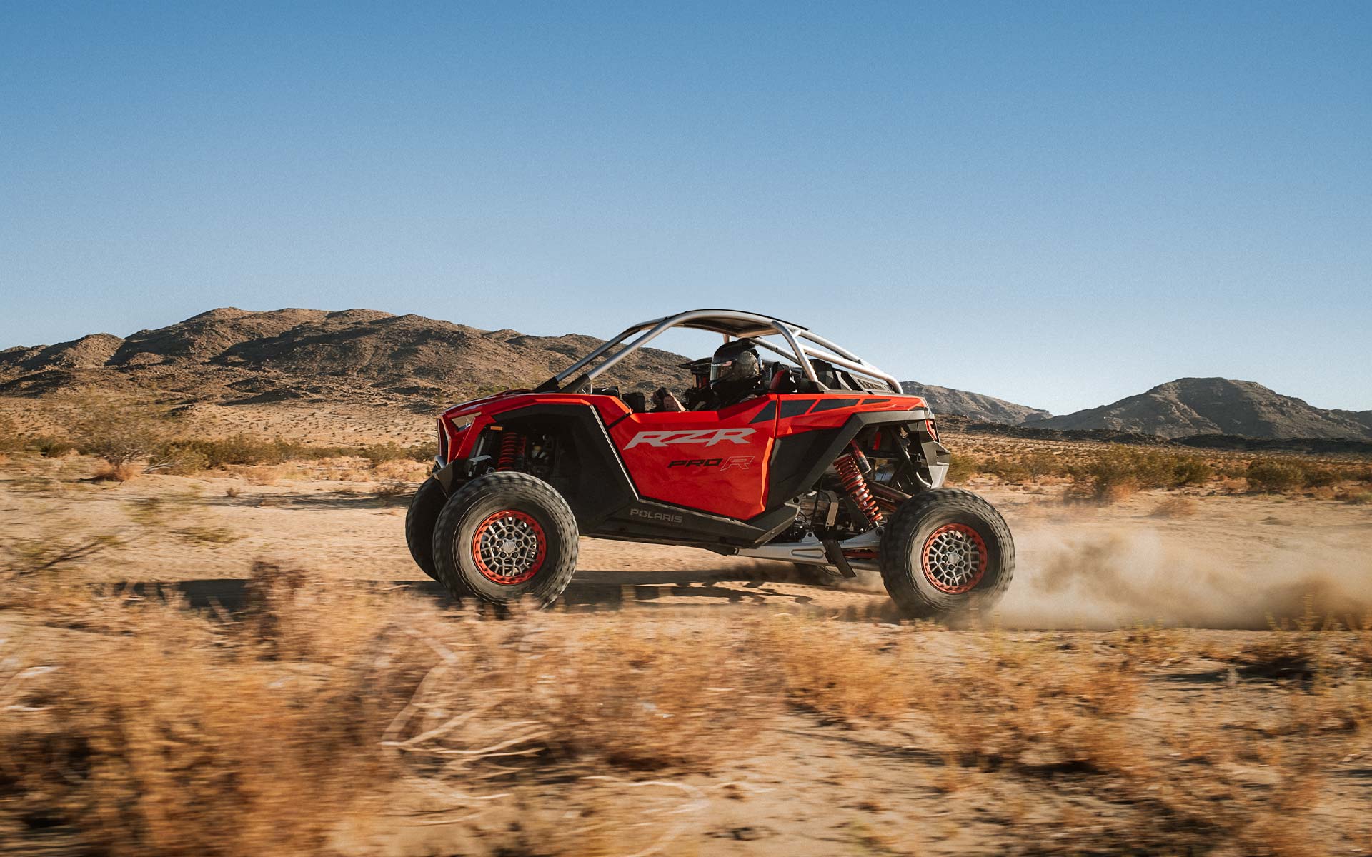 Desata una fuerza de la naturaleza con el RZR Pro R, nuestro RZR más potente con un rendimiento probado en competición.